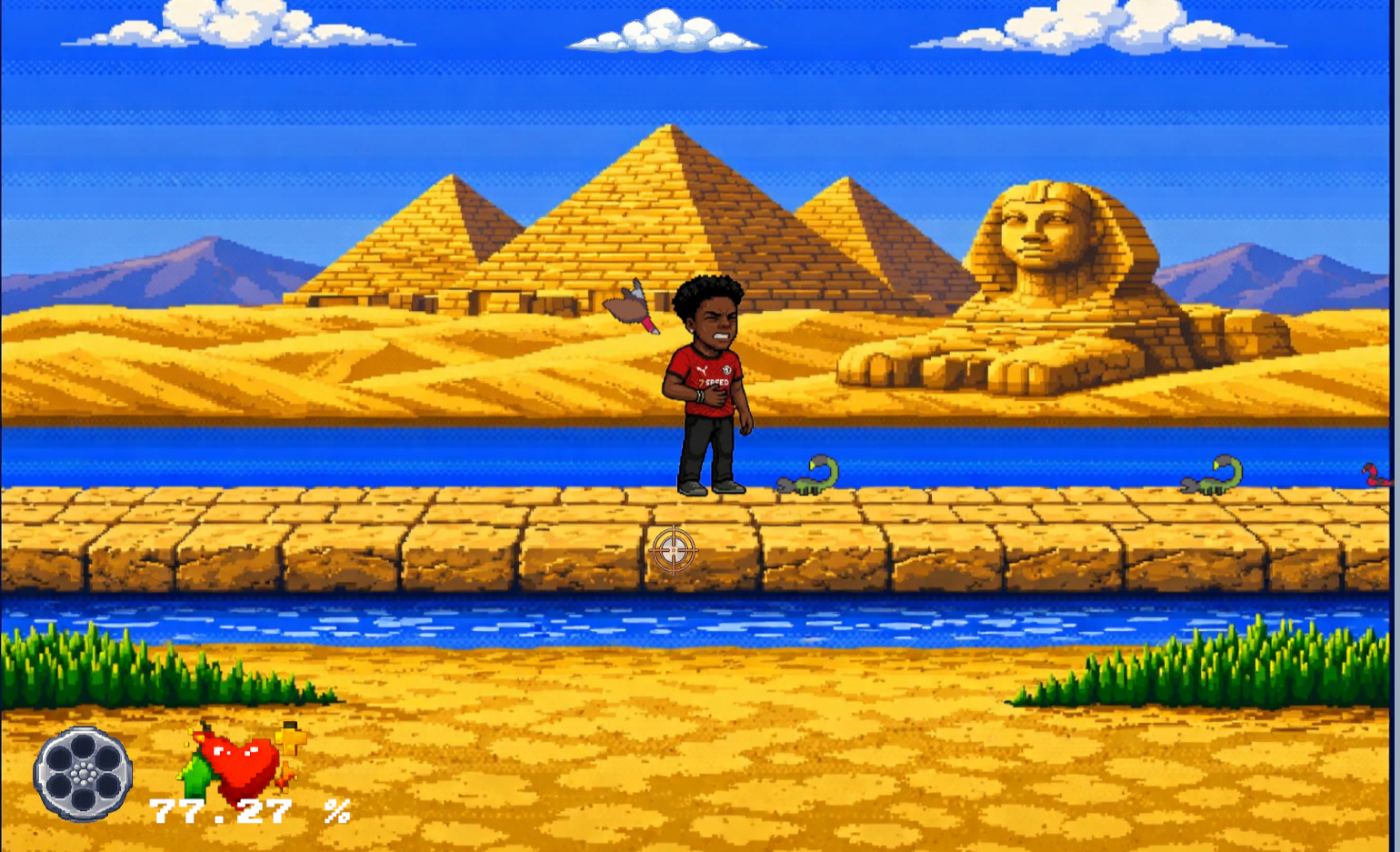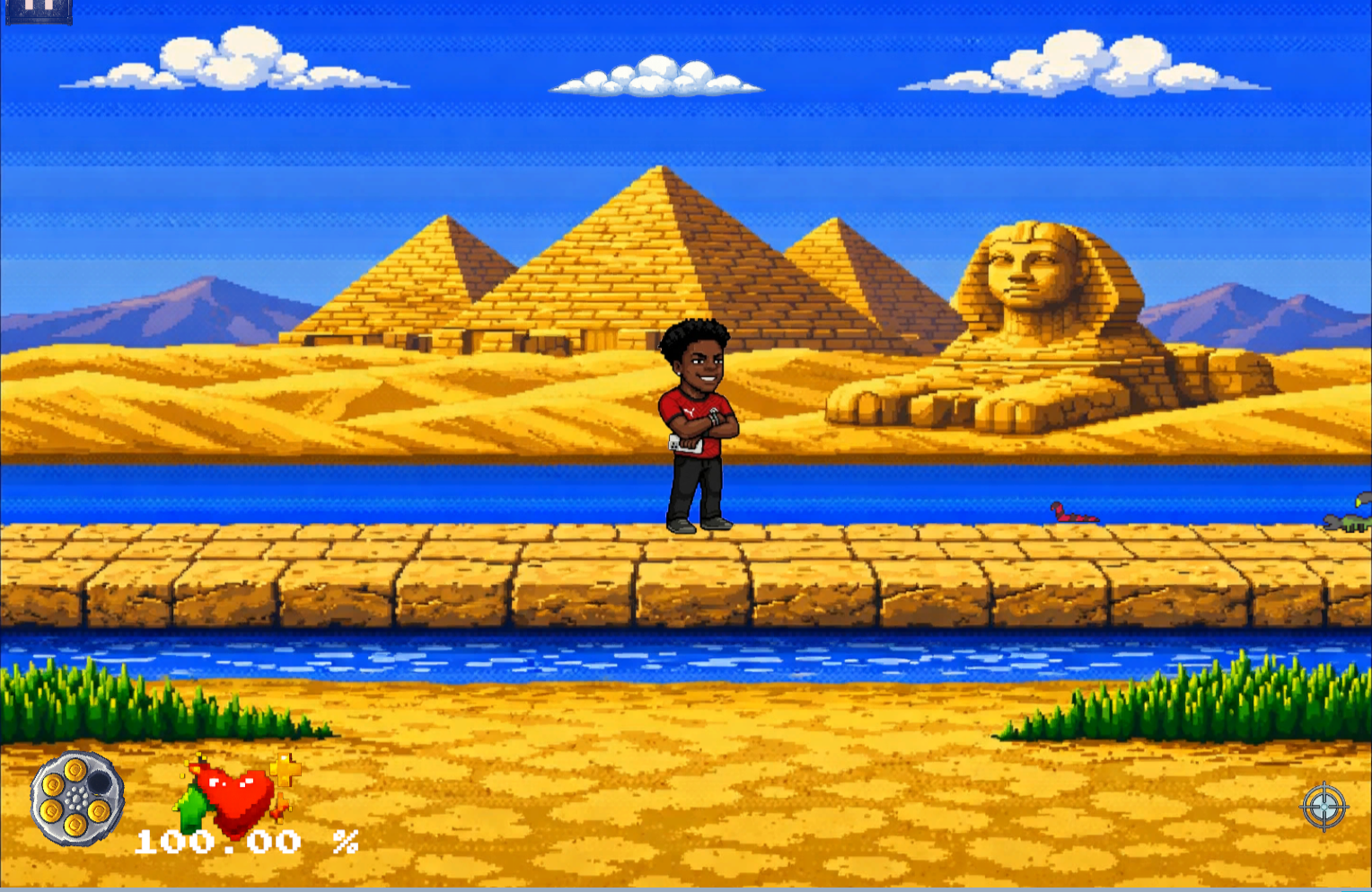 You play as Rudi trying to save IShowSpeed from ancient Egyptian enemies while he's just trying to get a cool picture with the sphinx and the pyramids. How long can he survive the different threats before you run out of stamina!